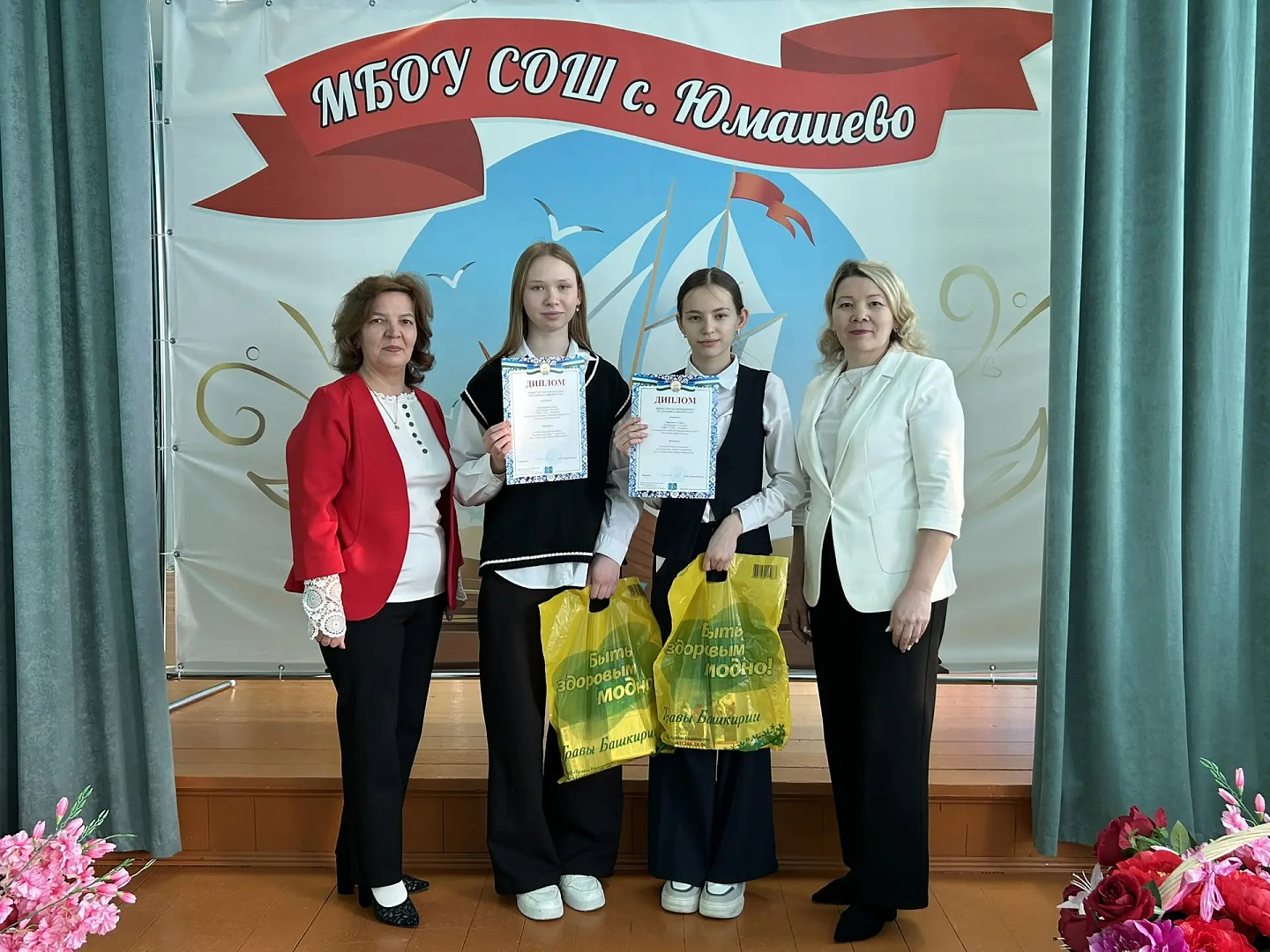Пять обучающихся МБОУ СОШ с.Юмашево: Ведерникова Злата, Сунагатулина Эвелина, Капитонова Анфиса (10кл.), Егорова София, Ефремова Софья (9кл.), достойно представили наш муниципалитет и показали отличные результаты на олимпиаде по чувашскому языку и литературе.